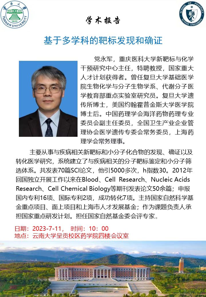 【学术报告】基于多学科的靶标发现和确证