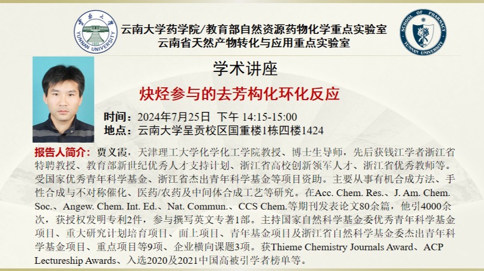 【学术报告】炔烃参与的去芳构化环化反应